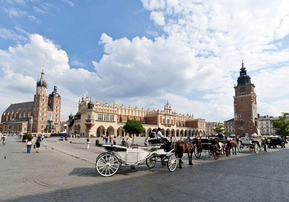 Zu Beginn entdecken wir die Geschichte eines der schönsten Marktplätze Europas. Anschließend führen wir unseren Rundgang ins historische Universitätsviertel, wo wir den gotischen Innenhof des Collegium Maius besuchen. Weiter geht es über den Allerheiligenplatz mit den gotischen Kirchen der Dominikaner und Franziskaner sowie durch die Kanonicza Straße, die als die schönste Gasse der Krakauer Altstadt gilt. Unser Weg führt uns zum Königsschloss auf dem Wawel, wo wir die Geschichte der ehemaligen Residenz der polnischen Herrscher kennenlernen (Außenbesichtigung). Danach besichtigen wir die Kathedrale, die als Krönungskirche und Grabstätte der polnischen Könige dient. Zum Abschluss kehren wir zum Marktplatz zurück, wo die Führung mit einem Besuch der Marienkirche endet, die den berühmten Veit-Stoß-Altar beherbergt.